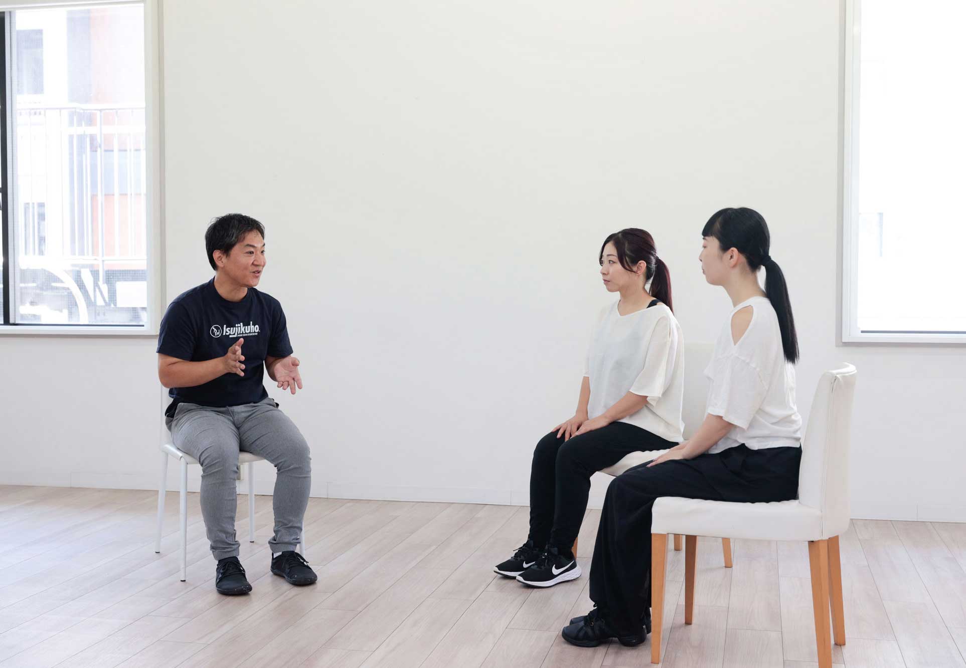 その二人がイス軸法Ⓡの生徒イメージモデルとして、廣瀬社長の直接指導のもと、イス軸法Ⓡを実際に体験しながら撮影を行いました。