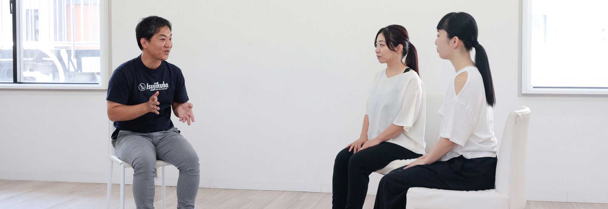 その二人がイス軸法Ⓡの生徒イメージモデルとして、廣瀬社長の直接指導のもと、イス軸法Ⓡを実際に体験しながら撮影を行いました。